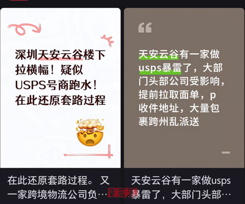 “兴**公司蓄意诈骗,无良老板潜逃!”暗藏怒火的维权横幅在深圳天安云谷写字楼下拉起,彻底打破跨境圈的宁静。了解后才知道,原来是某USPS号商因涉嫌邮资欺诈,被大批跨境企业上门围堵,但欺诈公司负责人据称已经“消失得无影无踪”。