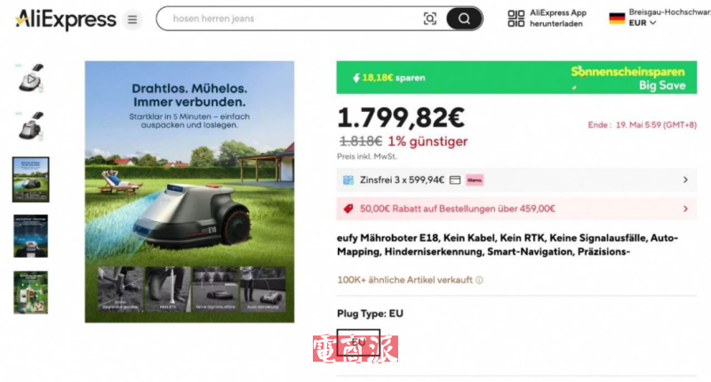 安克割草机全球首发 图源:阿里巴巴速卖通