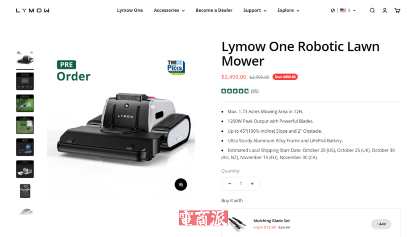 来牟科技割草机Lymow One 图源:Lymow