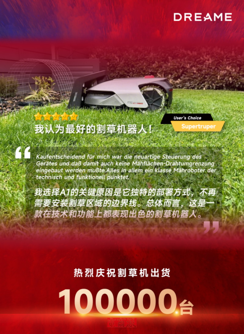 追觅科技割草机销量破10万台 图源:追觅科技