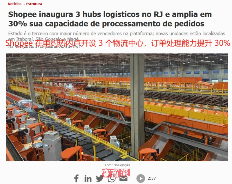 例如在几个月前,就有消息称Shopee计划在巴西里约热内卢大都市区新增三个物流枢纽,这些新物流枢纽建成后,将使Shopee在该州的订单处理能力提升30%,进一步强化其在巴西市场的物流布局。