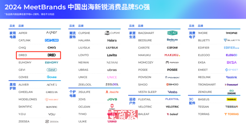 DREO则是由泽宝前合伙人之一、曾任轮值CEO的魏立虎创立,产品线涵盖了厨房小家电、加湿器、加热器和各类风扇等多个细分类目,品牌成立仅一年时间营收就达到了3亿元。在此前发布的《2024 MeetBrands中国出海新锐消费品牌50强》榜单中,DREO也成功上榜,在海外表现十分亮眼。