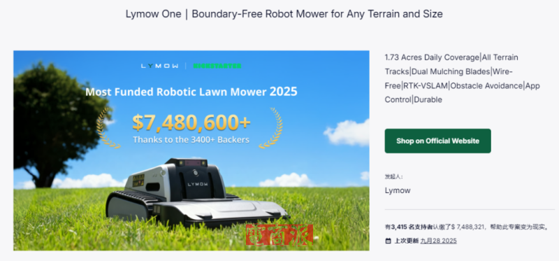 他们精准瞄准欧美庭院维护刚需,首款产品上市即爆火,累计筹集资金超748万美元(约合人民币5331.60万元),不仅创下同品类最高金额最高单价纪录,更进入全平台年度众筹榜Top5,迅速打开欧美市场。
