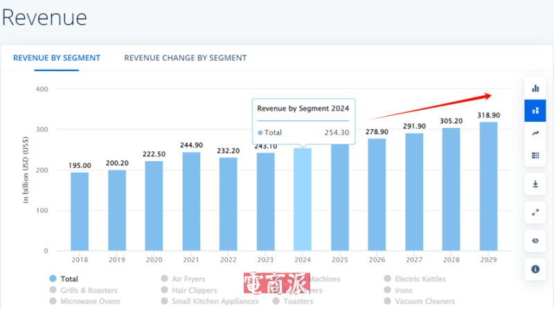 Cocinare 的成功并非偶然,而是产品硬实力与市场红利共振的结果,海外消费者对生活质量的要求越来越高,更是为小家电出海的持续扩容提供了天然土壤——Statista发布的数据显示,2024年至2028年间,全球小家电市场规模预计以4.65%的年复合增长率持续增长,到2028年该市场规模能增长到3100亿美元。