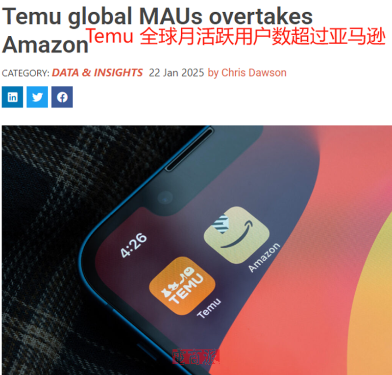 Temu全球月活数量超越亚马逊 图源:ChannelX