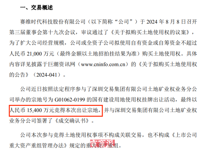 赛维时代在深圳买地 图源:巨潮资讯