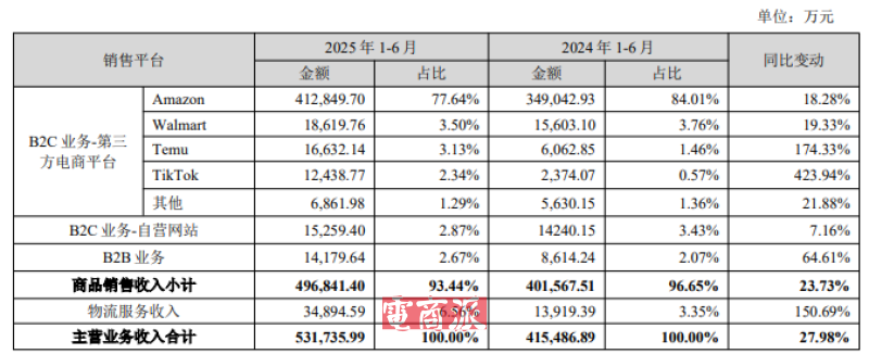 与此同时,赛维时代也在积极扩大渠道分布,提高整体抗风险能力。数据显示,2025年上半年,赛维时代新兴渠道增长迅猛,Temu平台营收同比增长174.33%,占比3.13%;TikTok Shop平台营收同比增长423.94%,占比2.34%。