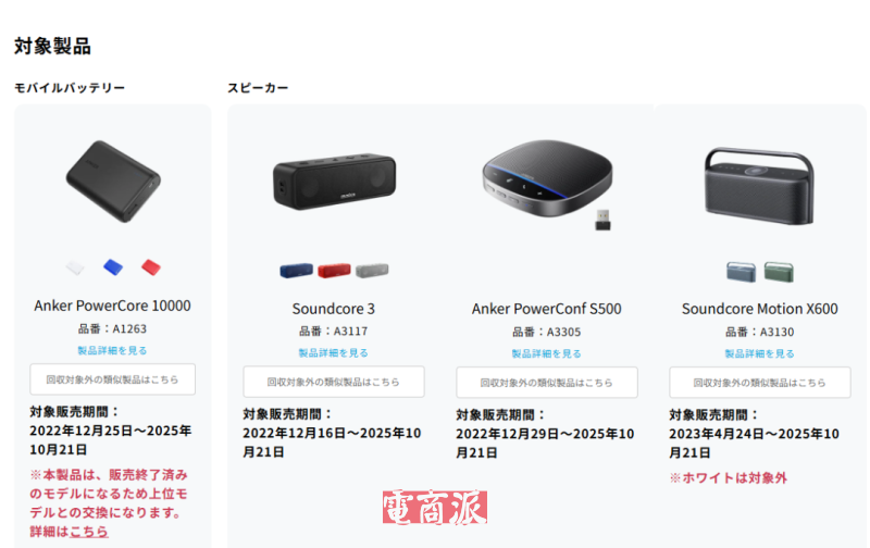 而就在近段时间,因旗下产品引发火灾事故,安克日本分公司也宣布,将自愿召回日本市场在售的四款产品,包括一款移动电源(充电宝)和三款蓝牙音箱,其中移动电源41万台,内置锂电池的蓝牙音箱10万台,共计超52万件产品(销售时段为2022年12月至2025年10月21日)。