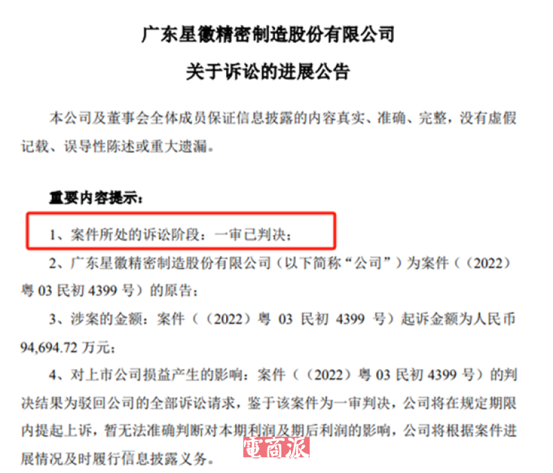 星徽股份一审败诉 图源:星徽股份