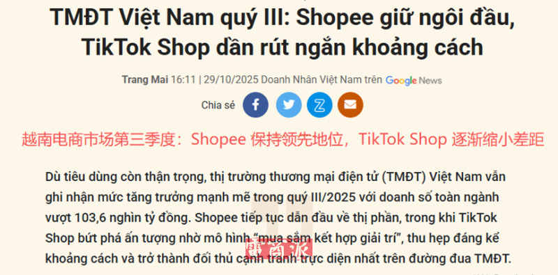 TikTok Shop越南和Shopee缩小差距 图源:Doanhnhan